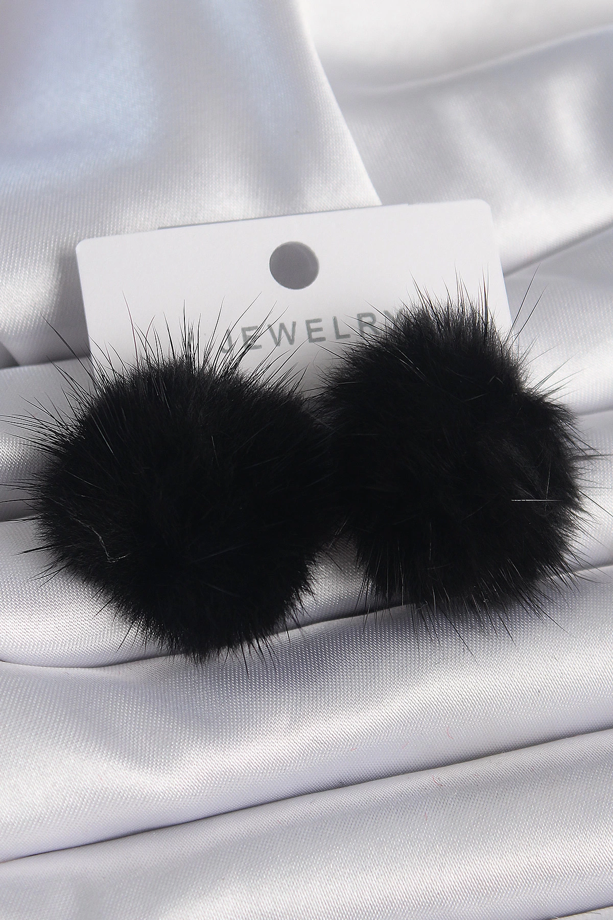 Siyah Renk Tüylü Ponpon Model Kadın Küpe