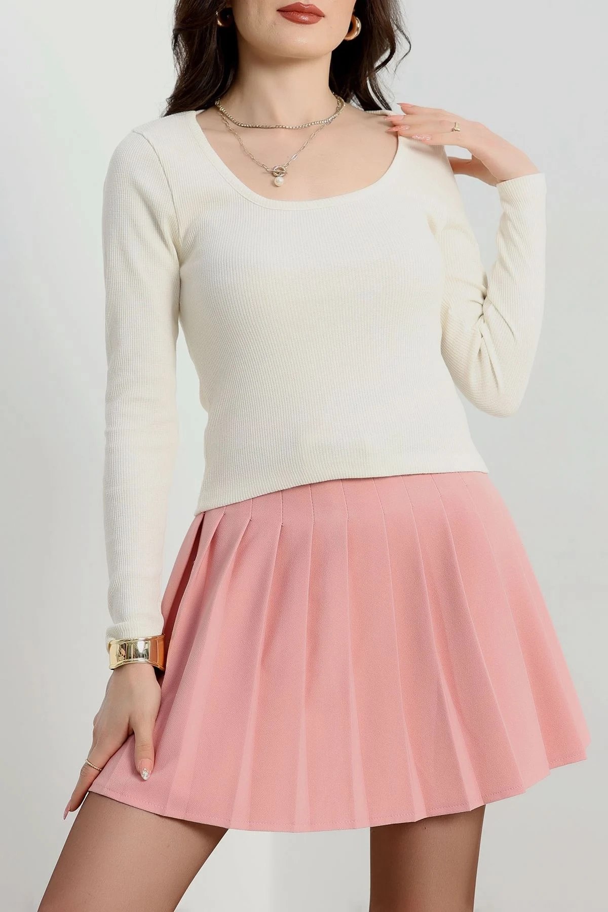 U Yaka Kaşkorse Bluz Beyaz A132