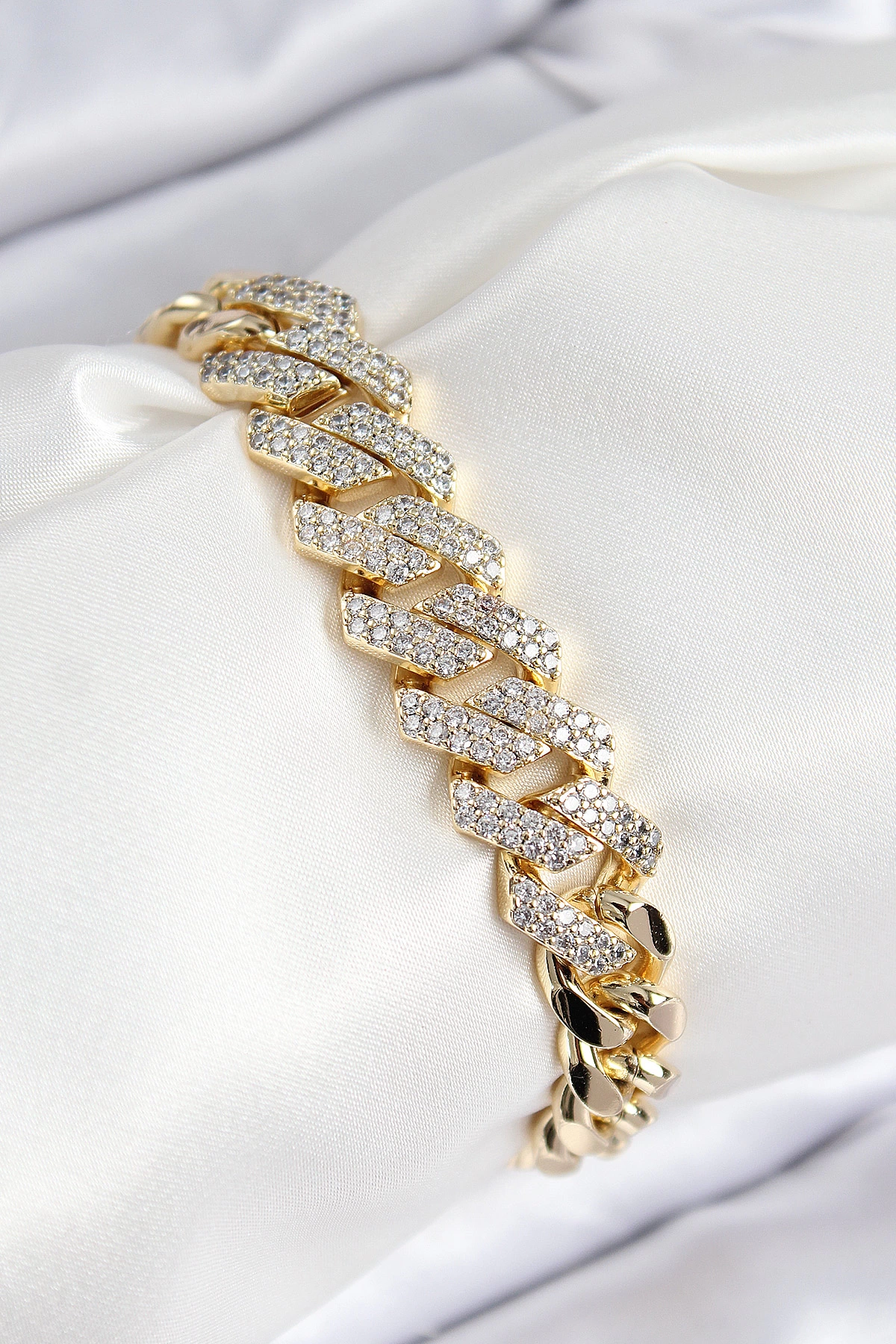 Vıp Pirinç Zirkon Taşlı Cuba Model Gold Renk Kadın Bileklik
