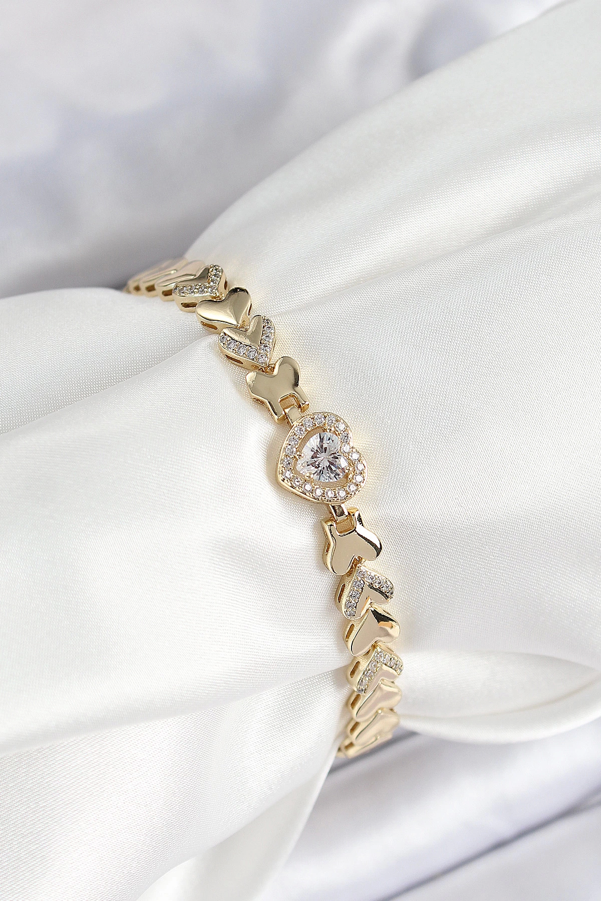 Xuping Pirinç Baget Kalp Model Gold Renk Kadın Bileklik