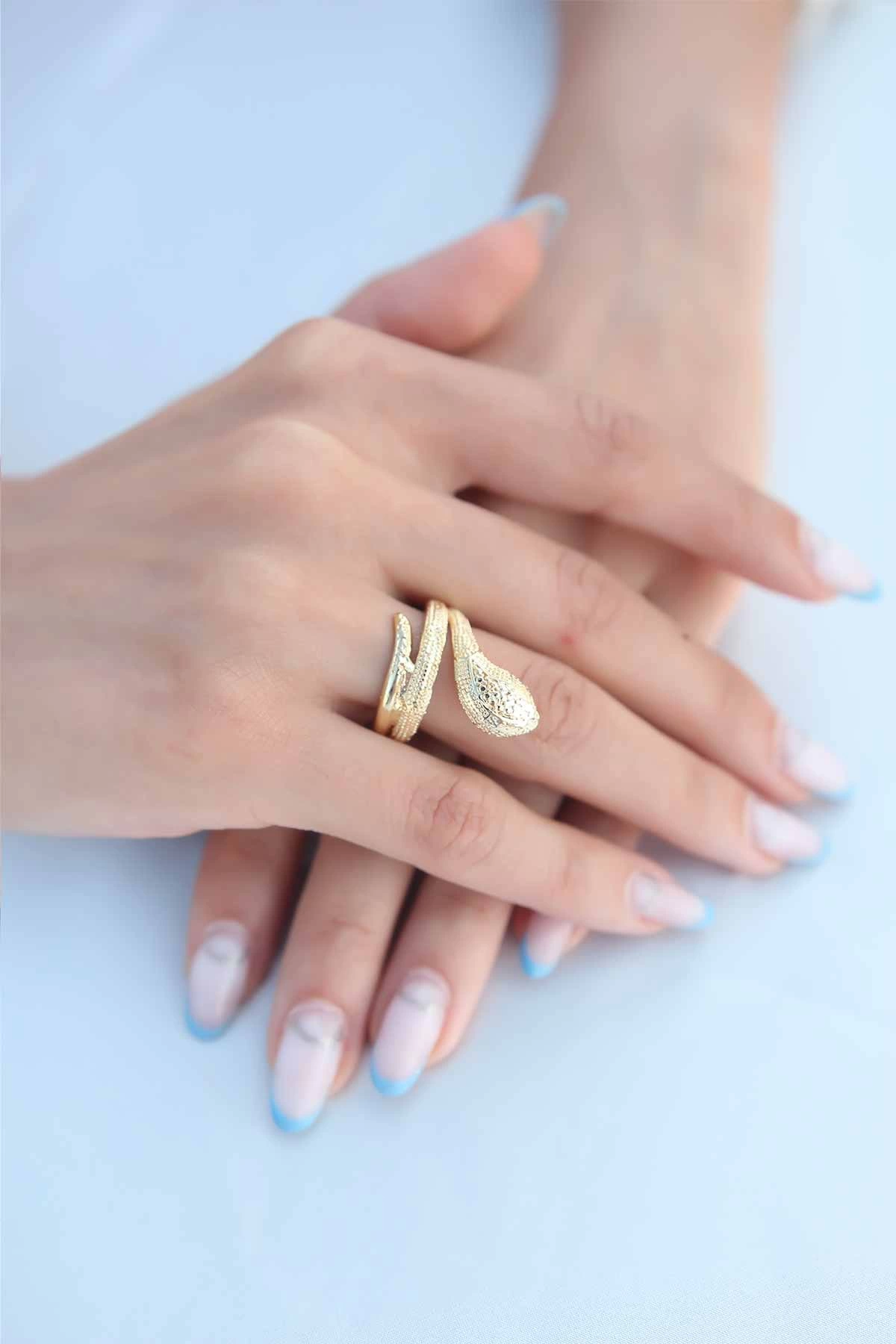Yılan Figürlü Gold Renk Kadın Yüzük