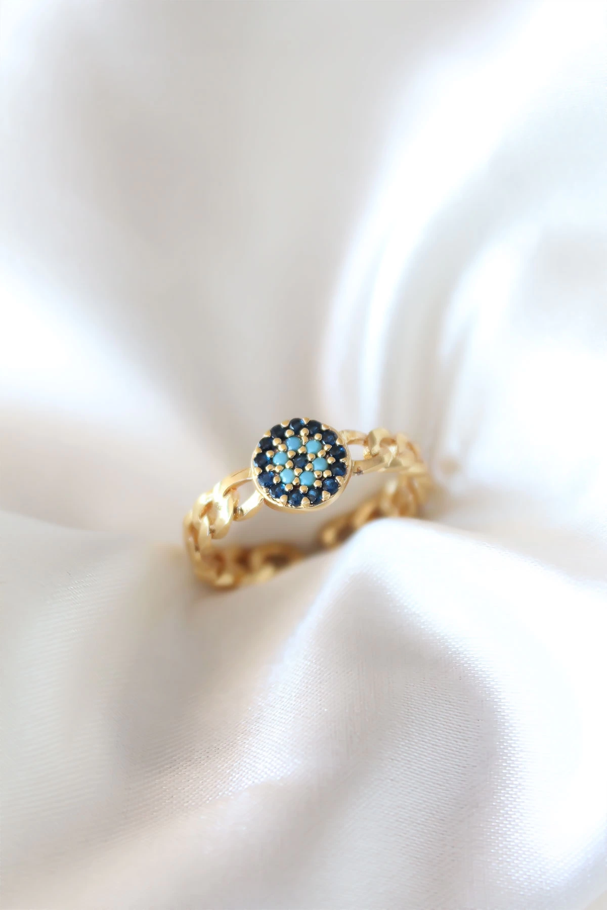 Zirkon Taşlı Nazarlı Altın Kaplama Kadın Yüzük